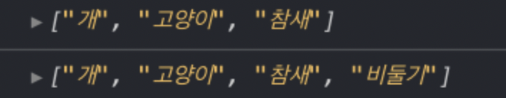 const animals=['개','고양이','참새'];