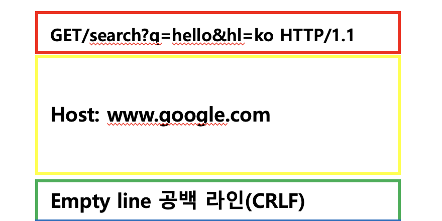 request-line=method SP(공백) request-target SP HTTP-version CRLF(엔터)