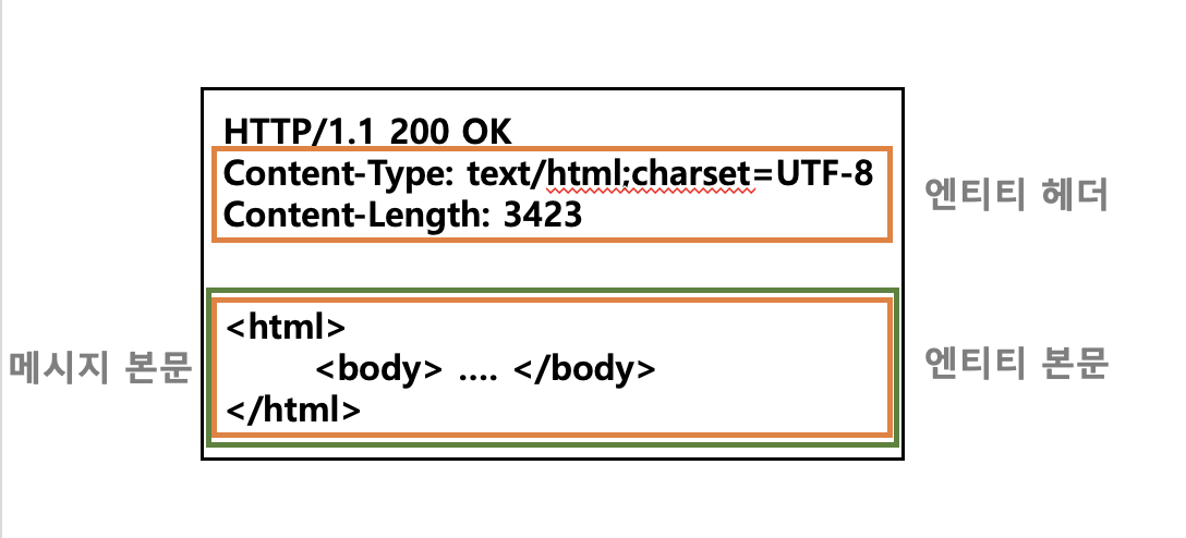 - Entity 헤더: 엔티티 바디 정보 ex) Content-Type: text/html, Content-Length: 3423